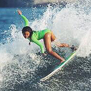 大自然を舞台に躍動する女性サーファーは力強く、そして美しい。