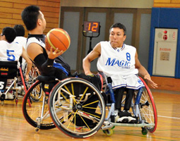 健常者のバスケットボール競技と異なるのは、ダブルドリブルがないことと、トラヴェリングとして車椅子を3回以上漕ぐのを禁止していることのみです。