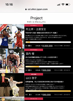 入口は3つ!支援したいアスリートのプロジェクトをクリック!