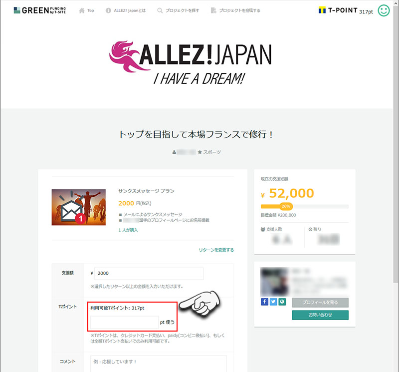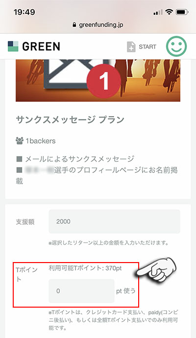 支援額の全部でも一部でも、Tポイントで支払うことができます。