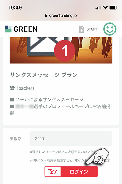 赤い「Y!ログイン」ボタンをタップすると、Tポイントの手続き画面に移動します。